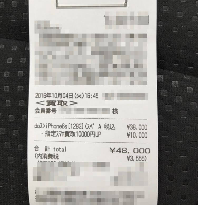 iPhone7は購入時に多くのポイントを使い購入額は約64,000円でした。(控え無し)